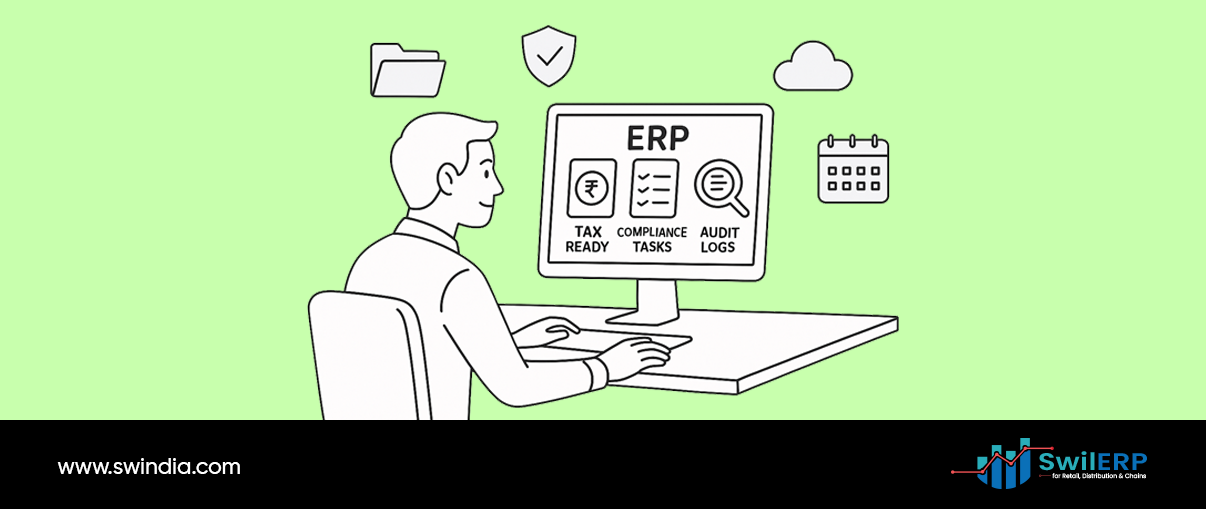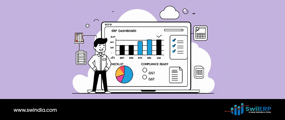 SwilERP Example: When a bill is created, stock reduces and tax gets posted instantly—no one has to retype data into accounting.