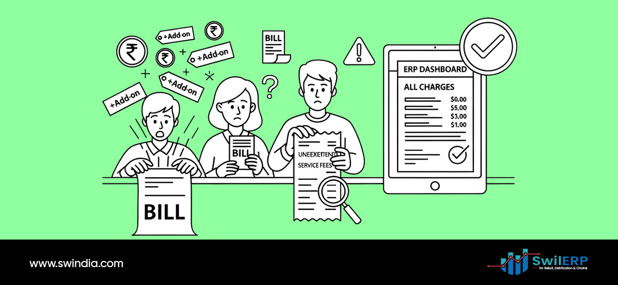 - Customers see every added cost on printed bills or e-invoices, reducing disputes.